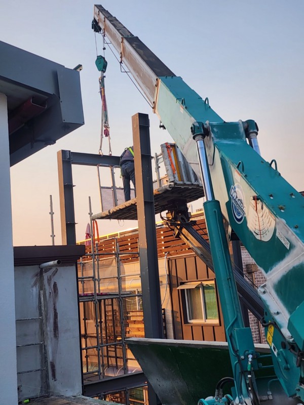 거미크레인 엘리베이터 설치 작업